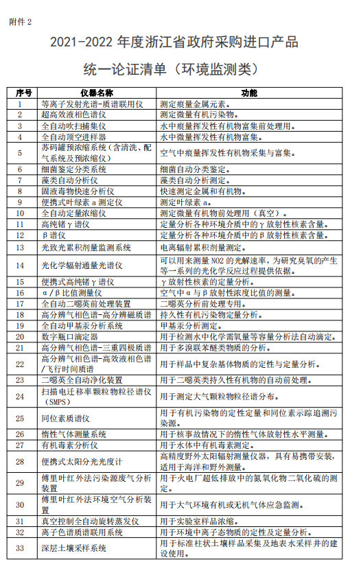 2.2021-2022 年度浙江省政府采購(gòu)進(jìn)口產(chǎn)品統(tǒng)一論證清單(環(huán)境監(jiān)測(cè)類(lèi))