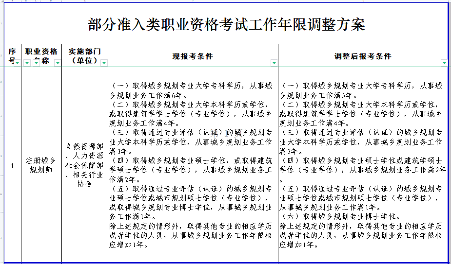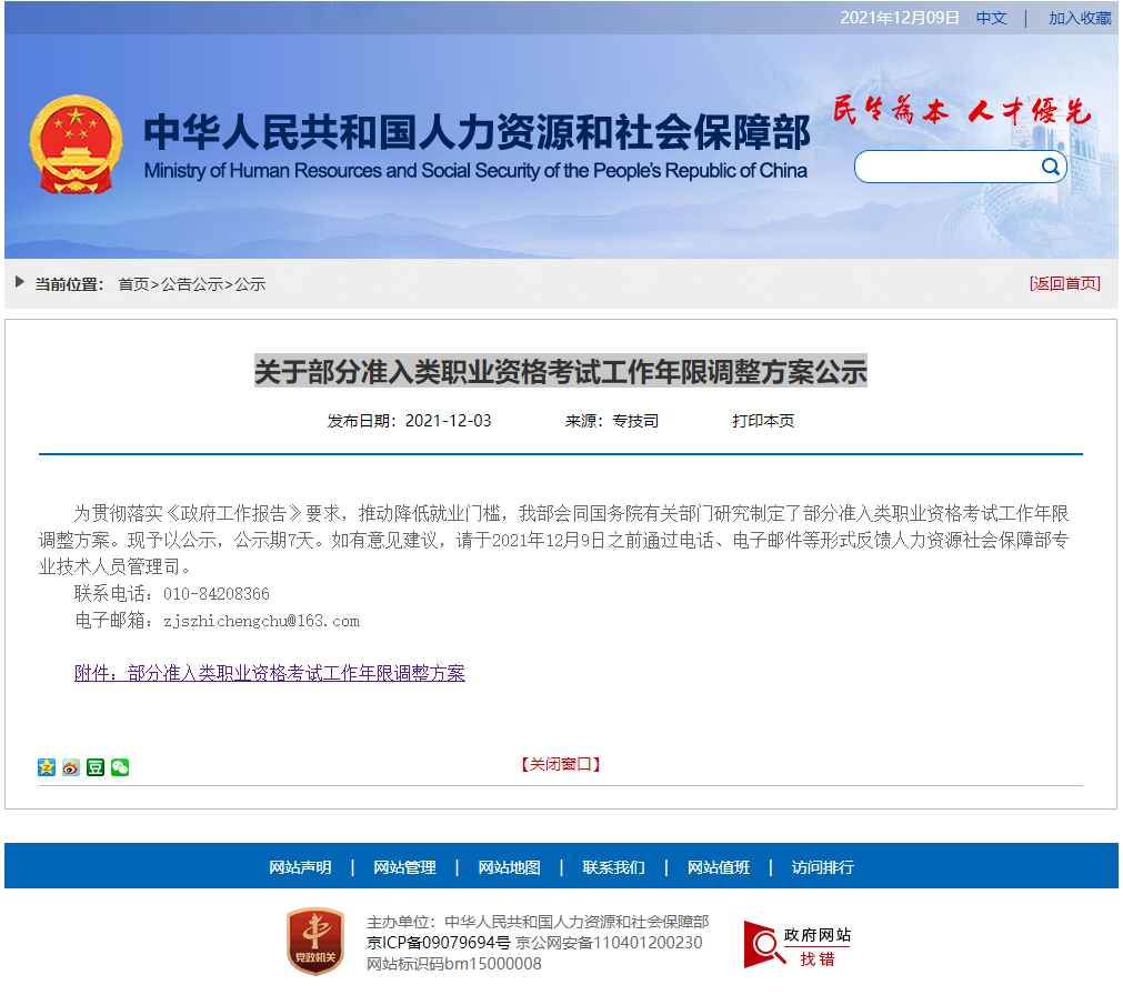 人力資源和社會(huì)保障部關(guān)于部分準(zhǔn)入類職業(yè)資格考試工作年限調(diào)整方案公示