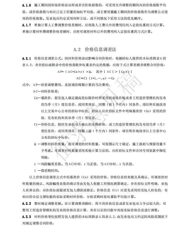 1 承包人投標(biāo)報(bào)價(jià)中材料單價(jià)低于基準(zhǔn)單價(jià):施工期間材料單價(jià)漲幅以基準(zhǔn)單價(jià)為基礎(chǔ)超過(guò) 合同約定的風(fēng)險(xiǎn)幅度值,或材料單價(jià)跌幅以投標(biāo)報(bào)價(jià)為基礎(chǔ)超過(guò)合同約定的風(fēng)險(xiǎn)幅度值時(shí),其超過(guò) 部分按實(shí)調(diào)整;