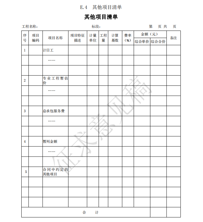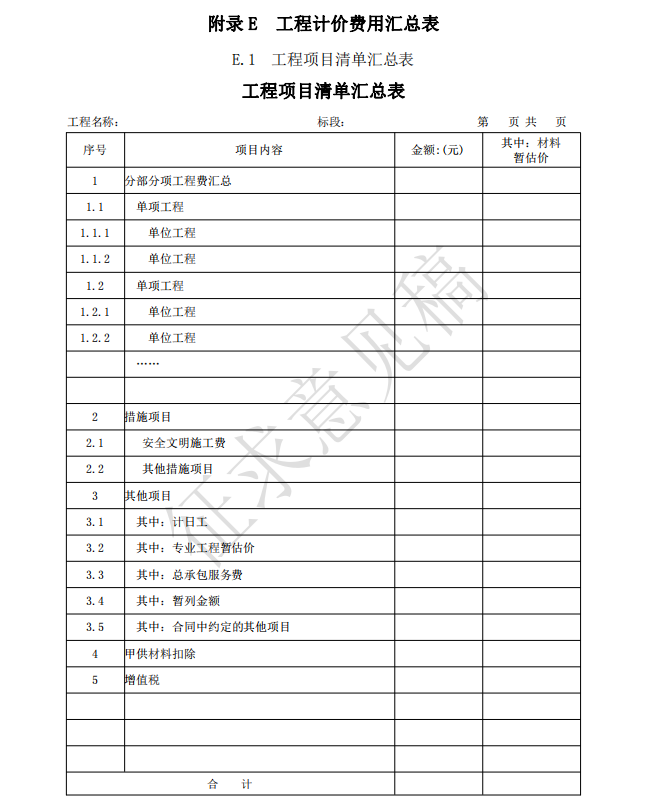 14.0.1 工程計(jì)價(jià)表宜采用統(tǒng)一格式。各省、自治區(qū)、直轄市建設(shè)行政主管部門(mén)和行業(yè)建設(shè)主管部 門(mén)可根據(jù)本地區(qū)、本行業(yè)的實(shí)際情況,在本標(biāo)準(zhǔn)附錄 B 工程計(jì)價(jià)表格的基礎(chǔ)上補(bǔ)充完善。