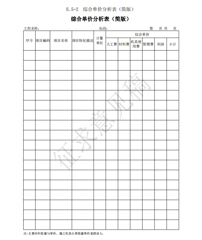 14.0.5 投標(biāo)人應(yīng)按招標(biāo)文件的要求,附工程量清單綜合單價(jià)分析表。