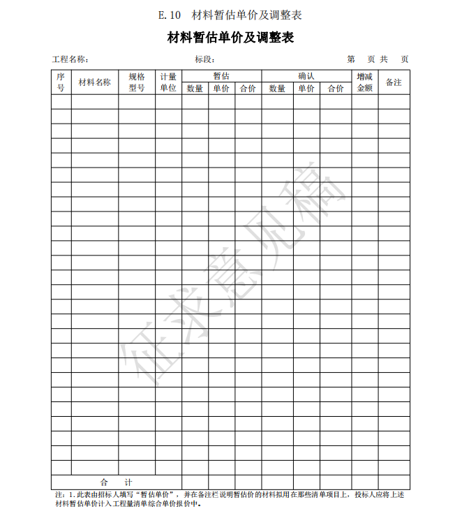 1)最高投標(biāo)限價(jià)使用表格包括:B.2、C.2、D.1、E.1、E.2、E.3、E.4、E.5-1 或 E.5-2、 E.6、E10、G.1、G.2、G.3、G.4;