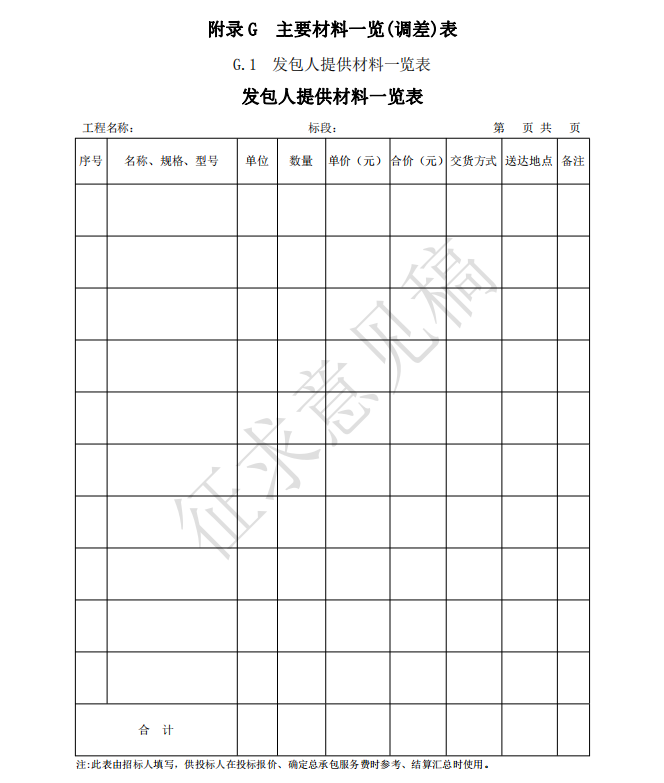 2)投標(biāo)報(bào)價(jià)使用的表格包括:B.3、C.3、D.1、D.2、E.1、E.2、E.3、E.4、E.5-1 或 E.5-2、 E.10、G.1、G.2、G.3、G.4;