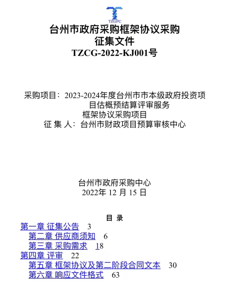 【轉(zhuǎn)發(fā)】2023-2024年度臺(tái)州市本級(jí)政府投資項(xiàng)目估概預(yù)結(jié)算評(píng)審服務(wù)框架協(xié)議采購(gòu)項(xiàng)目